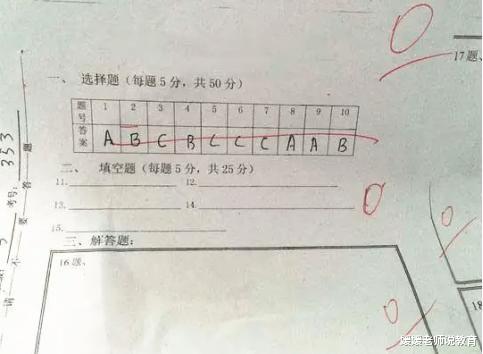 这位学生是睡着了还是完全不会呢?整张卷子除了选择题,其他都是一片空白,而选择题也全做错了,顺其自然的就诞生了一张“0分试卷”。考试时间应该是足够的,但是为什么卷子一片空白,我认为主要还是学生的态度问题。 可能这位学生又免不了回家的一顿挨揍吧,希望这位孩子能认真对待考试,平时对待学习的时候也可以认真一些。这样也不至于考试一脸懵。 “什么水不能喝”?小学生给出2字答案,老师看后直接给满分“什么水不能喝”?如果你看到这样的题,你的答案是什么呢? 我们来看下这位学生是怎么回答的。