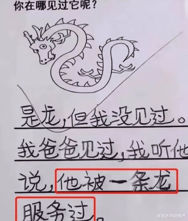 这位学生在回答图中是什么的时候,他不仅答出这个动物的名称,还说是听爸爸说过,爸爸被一条龙服务过。这个答案让老师看了都挺哭笑不得的,但老师还是给了满分。