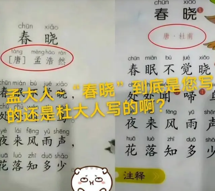 “能不能用点心啊”?小学教辅“又翻车”,家长气得直跳脚!书中自有黄金屋,书中自有颜如玉,家长会教育学生养成爱看书的好习惯,而教辅书是辅助学生的一种工具,能够提高学生的学习效率,让学生对知识点有更深入的了解,那么正常来说,相关人员应该十分严谨,绝不允许任何问题发生,但结果呢,真是叫人失望。小学教辅“又翻车”,家长气得直跳脚,众所周知,学习是枯燥的,但学习是学生的任务,学生要热爱学习,那么教辅书会进行一定的引导,但引导也要注意形式,在教辅书中出现了《我要做爱学习的好孩子》,如果将这几个字组合在一起并没有什么问题,但不知为何要将其分开排版,不仅将前四个字单独列出来,还将其放大。 家长看后气得直跳脚,网络时代,如今的学生很早熟,而出现这样的字样,学生难免会多想,难不成是在提醒小学生早恋吗?家长表示很气愤,也不理解这样的排版,而除了排版问题,有些内容也是存在错误的《春晓》的作者发生了改变,这是对学生的一种误解,如果是在考试时,学生会因此而扣分,而更重要的是,学生并不知道自己背的是错的,难怪家长会气得跳脚,对此,网友也感到十分气愤。 有人说:“能不能用点心啊”?既然是学生要看的东西,为何不严格把关,居心何在?还有网友表示:对于这样的问题该严肃处理,找到相关负责人,进行相应的处罚,否则问题还会再次出现,各位家长不能掉以轻心,不必要严肃对待。也许是不经意间的行为,也许是相关人员大意了,但不管怎样,错了就是错了,这样的错误绝对不应该再次出现,想必小学生老师在日后的教学中,会更加严谨,也会十分注意小学生观看的教材教辅,那么笔者也希望家长能够提高警惕,和老师共同教育学生,护学生周全。