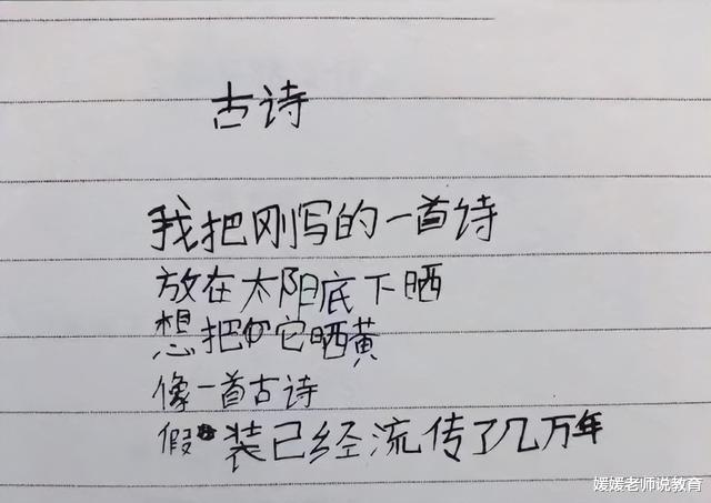这首《古诗》,后面几句“放在太阳底下晒,像一首古诗,假装已经流传千年”,多么富有诗意的描述,短短几十个字,读完让人久久回味,仿佛喝了一杯上等的好茶,虽然茶杯已空,但是香气却久久缠绕在唇齿间,回味在心头,这就是一杯好茶,一首好诗的魅力,虽然时间会冲淡一杯好茶的魅力,但是却能让一首好诗愈发弥香。