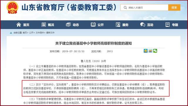 有一位农村教师朋友,2021年5月评了聘上了“基层中小学高级教师”,可是这位教师今年3月份就要退休,履职中小学基层高级教师岗不到2年。他向相关领导咨询,退休时能否享受高级教师待遇,得到的答复是“基层高级要连续聘满5年,考核合格,可转为普通高级,退休时享受高级待遇;不满5间,中间退出,只能享受中级职称待遇。”这位领导的答复具有“法律效力”否?农村基层高级教师不满5年退休就要“打回原形”吗?首先,省级文件只能由省级部门来解释。基层中小学教师高级职称制度是2019年7月省人社厅和教育厅联合出台的制度(鲁人社发〔2019〕26号),那最终解释权只能是省人社厅和教育厅,下属的市县区相关部门和人员都无权力和资格对这个文件进行解释。其次,文件中并没有明确说明在农村基层高级教师岗位上退休,不满5年不能享受高级职称待遇。相关人员的解释依据是文件中的“定向评价、定向使用”一条中的规定:基层中小学教师职称实行评聘结合,仅限在基层中小学中聘用(任)。取得基层职称的教师交流到非基层学校,不得按照基层职称聘用(任),不再享受相应的职称和工资待遇。取得基层职称连续聘满5年,考核合格且按要求完成继续教育的,经中小学教师职称评审委员会考核认定通过后,可换发相同级别的中小学教师职称证书。”这一条其实说得很明白:基层岗位只限基层,脱离这个岗位,就不再享受相应职称待遇。在这里,文件并没有涉及在农村基层岗位退休是否需要满5年才能享受高级待遇问题。而现在,如果教师在农村基层岗位上退休,并没有“脱立”基层,并有交流更没有调离“基层”,而是“仍在”基层。因此,理应继续享受高级职称待遇。平湖一柱以为,文件中的要求应该是防止有人钻政策的空子,在“基层”评聘上高级职称,然后又借故离开。现在教师退休则不属于这种情况,是国家制度规定,而非是“人为故意退岗”,所以,退休后继续享高级职称待遇并没有违背“定向评价、定向使用”原则。至于“5年转正说”,实际上还是为了鼓励基层教师坚守基层,而且提出了时间下限——至少5年:“取得基层职称连续聘满5年,考核合格且按要求完成继续教育的,经中小学教师职称评审委员会考核认定通过后,可换发相同级别的中小学教师职称证书。”这个规定表明,“基层高级边续聘满5年”就可以转成普通高级了,也就可以脱离基层了,脱离基层后仍可以享受高级职称待遇了。所以,文件中的这个“满5年”,应该是指在基层高级岗位上的最低履职年限,而并不是要求在农村基层岗位上退休时也非得满5年。本文开头的这名农村基层教师,从参加工作一直到现在,从来没有离开过农村基层,退休时不要说满了30年,已经满了40年,过去没有评聘上高级,原因是多方面的,而最主要的就是过去给农村教师高级岗位指标数太少,现在有了好政策,向农村基层倾斜,实行基层高级岗位职称制度,评聘上了基层高级职称,是对他们坚守乡村一辈子、为乡村教育奉献一生的认可和承认。如果以某些人解读的“在基层高级岗位上不满5年退休,不能享受高级职称待遇”,既不合情,也不合理,会令坚守乡村基层一辈子的教师们心寒。  最后,在农村基层高级教师岗位上不满5年、在农村退休的教师,如果不能享受高级职称待遇,涉嫌对农村教师歧视。按现行规定,普通中小学高级教师职称,即便是在退休的最后一年评聘上高级职称,退休时也会享受高级职称待遇。那么为什么要求农村基层教师,非得在基层高级岗位干满5年退休才能享受高级职称待遇呢?这种政策那就是“不是向农村倾斜”不是“鼓励人才到基层任教”,不是鼓励教师“在基层长期从教”,而是对农村基层教师赤裸裸的歧视!为此,强烈建议:评聘上基层高级职称的中小学教师,如果在农村基层岗位上退休,无论任职年限是多少,理应和普通中小学高级教师一样,享受高级职称待遇。 (作者:李玉柱,本文为 平湖一柱原创作品,欢迎指导,转载或引用请注明作者和出处,违者必究。)