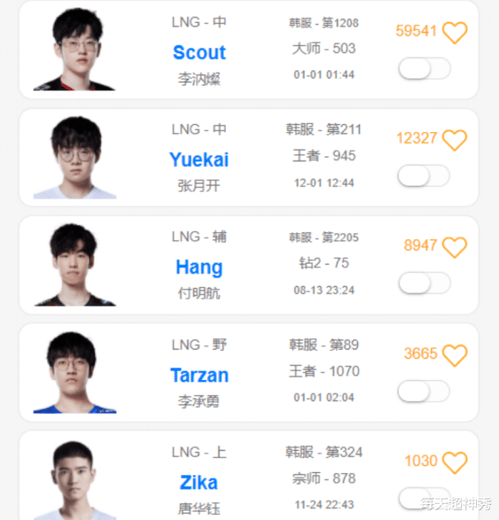 时至凌晨,转眼假期已经过半,云集WBG、BLG、OMG、LNG、EDG二队、IG二队、WE二队等十余支LOL劲旅的2022微博杯白热化,究竟哪四支来自LDL发展联赛的队伍能够通过首轮双循环BO1赛制的考验,与实力强悍的LPL战队WBG、BLG、OMG、LNG在八强淘汰赛相遇?答案即将揭晓。  本届微博杯拉开大幕之前,有一支参赛队伍已经成功捧杯,他就是赢下德玛西亚杯的BLG,除了BLG,签下小学弟Scout的LNG同样备受瞩目。回顾2022LOL冬季转会期,LNG针对上半区进行补强,在阿乐远走EDG,英雄联盟冠军中单Doinb暂别赛场后,LNG针对上半区进行补强,不只将潜力十足的前IG主力上单Zika招入麾下,还顺利签下告别老东家EDG的Scout,整体实力不容小觑。 或许连粉丝都未曾料到,EDG俱乐部至今没有更新视频,送别为队伍效力七年的小学弟Scout,这让大家更加期待后者在本届微博杯的表现。迎接8强淘汰赛!赛前LNG小学弟Scout加大了自己的训练强度,甚至熬夜训练,通过LOL韩服高分段排位赛和战队间的5V5训练赛提升竞技水准。 走进LNG俱乐部在LOL韩服的Rank主页,组成主力中野的小学弟Scout、野王tarzan是训练强度最大的两位悍将,其中小学弟Scout处于上分阶段,目前身处韩服大师503胜点,周胜率达到6成,只要延续目前的势头,Scout就能在2023LPL春季赛到来之前,晋升韩服最强王者;另一边Tarzan身处最强王者1070胜点,英雄池和对新版本的适应程度值得LNG教练组信任。
