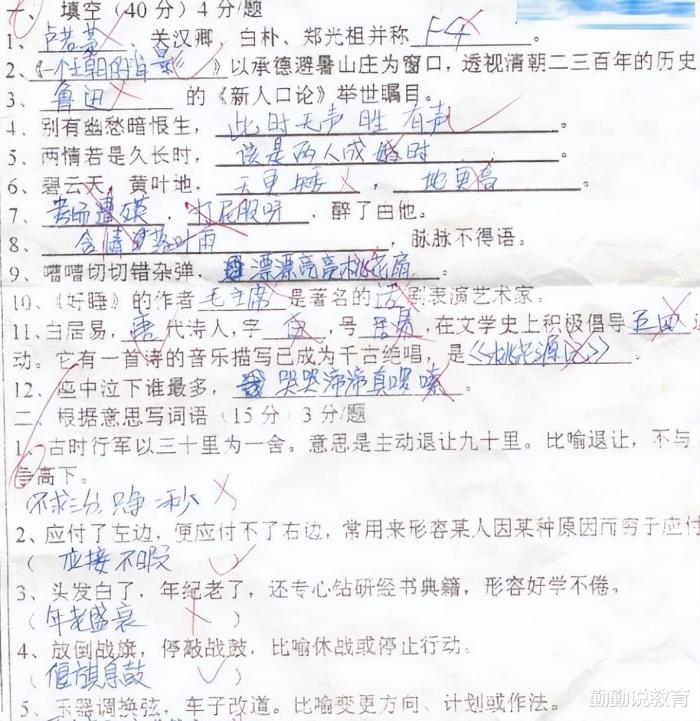 小学生为了完成试卷,甚至可以说是“绞尽脑汁”其实对于小学生来说,很多人都认为他们没有面对考试的必要,毕竟年纪还小,就像是这样的试卷答案,对于老师来说也是一种阅卷负担。但自从同学们进入小学之后,考试已经成为一种必要的功课,很多同学可能并不会有抵触心理,只不过是按部就班的完成一张试卷,而在这个过程中,他们也是绞尽脑汁,想让考试过程赶紧结束。这也是因为同学们没有意识到考试的重要性,小学相对来说不会对排名斤斤计较,但也是在培养同学们的考试能力。 尤其是中国的教育方式,主要还是以应试教育为主,所以还希望同学们从小对考试重视起来,即便所掌握的知识并不是很多,但至少要对考试有一个良好的态度。考低分并不可怕,怕的是同学们没有意识到每一次考试的重要性,这也是家长比较担心的问题。