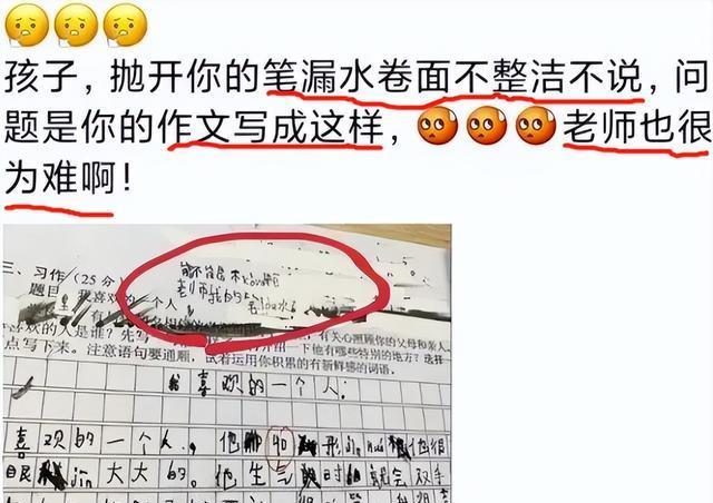 一位小学生更尴尬,本来学习成绩就不好,唯恐成绩不佳被家长批评。结果语文考试的时候笔漏水,整个作文卷面显得脏兮兮的,字迹都无法辨识了。学生就害怕了,其他题目正确率不高,全靠作文拿分呢,要是作文再不拿分,假期旅游就泡汤了。 这位学生求生欲满满,便在试卷上请求老师的谅解。老师也很为难,作文评分规则上,卷面分很重要。笔坏了可以理解,要是学生作文写得好,老师也会手下留情。可是学生这作文也写得一般,老师也不能给太多同情分。