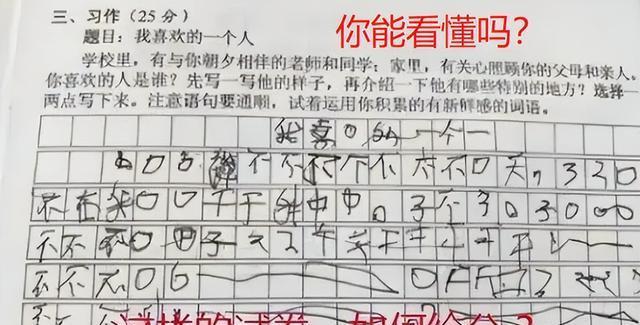 有些学生的字迹工整,一看就是学习态度认真的好学生。即使开放性试题有些出入,老师也会酌情给点卷面分以兹鼓励。可有些学生字迹乱成一片,根本看不出答案。数学和英语题都是字母和数字,老师还能看出一二,只要结果正确就给分。 语文老师就难过了,根本不知道学生写了什么,感觉一分不给,对不起学生辛苦写了这么多字。要是给分,又觉得对不起自己,毕竟根本不确定学生的答案对不对。盲目给分有失公允,暗自发誓,下学期一定要重点强调一下卷面问题,以免学生日后吃亏。