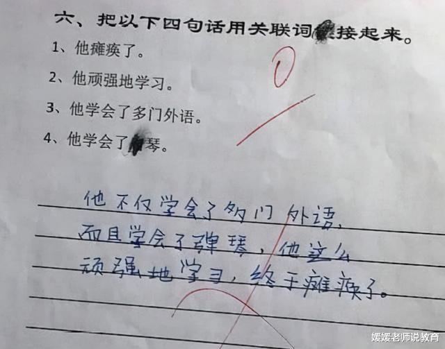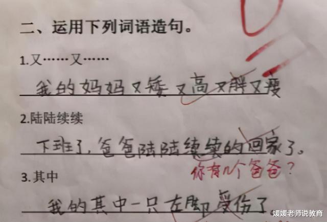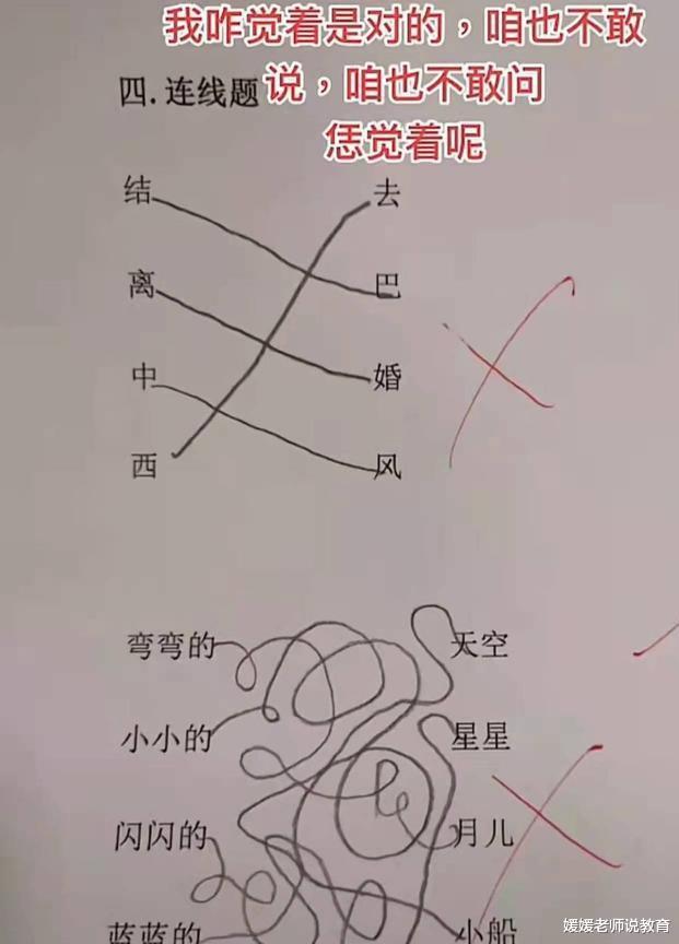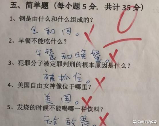 这位学生的回答不仅正确,而且是正正确!不仅按要求写出了正确答案,而且按要求写出了正正确答案,哈哈……多可爱的回答,就是左看右看,横看竖看看不明白,怎么就错了呢?各位可以评论区指点一下吗?
